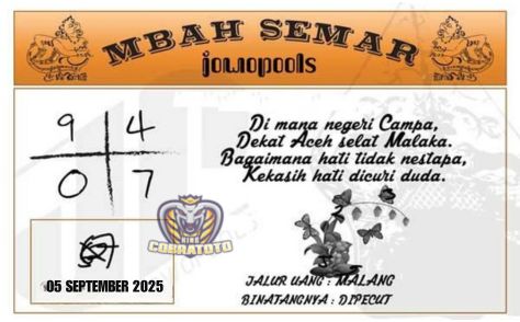 Syair HK Mbah Semar – Syair Hongkong kami sediakan khususnya untuk para peminat togel . Dengan kiat sama-sama mbah semar dapat memperoleh jackpot dari bandot HK . Situs akiprediaksi.com menyediakan banyak jenis prediksi , dimulai dari prediksi HK , prediksi HK , dan prediksi hk juga tentunya. Tujuan utama kami dalam memberikan prediksi nomor keluaran HK , ini yaitu untuk membantu para pengunjung kami memperoleh kemenangan yang luar biasa untuk setiap harinya. Dibawah ini kami bagikan prediksi syair semarĀ untuk hari ini.