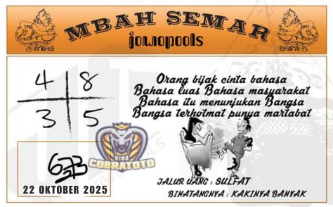 Syair HK Mbah Semar – Syair Hongkong kami sediakan khususnya untuk para peminat togel . Dengan kiat sama-sama mbah semar dapat memperoleh jackpot dari bandot HK . Situs akiprediaksi.com menyediakan banyak jenis prediksi , dimulai dari prediksi HK , prediksi HK , dan prediksi hk juga tentunya. Tujuan utama kami dalam memberikan prediksi nomor keluaran HK , ini yaitu untuk membantu para pengunjung kami memperoleh kemenangan yang luar biasa untuk setiap harinya. Dibawah ini kami bagikan prediksi syair semarĀ untuk hari ini.