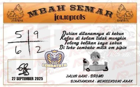 Syair HK Mbah Semar – Syair Hongkong kami sediakan khususnya untuk para peminat togel . Dengan kiat sama-sama mbah semar dapat memperoleh jackpot dari bandot HK . Situs akiprediaksi.com menyediakan banyak jenis prediksi , dimulai dari prediksi HK , prediksi HK , dan prediksi hk juga tentunya. Tujuan utama kami dalam memberikan prediksi nomor keluaran HK , ini yaitu untuk membantu para pengunjung kami memperoleh kemenangan yang luar biasa untuk setiap harinya. Dibawah ini kami bagikan prediksi syair semarĀ untuk hari ini.