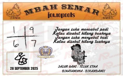 Syair HK Mbah Semar – Syair Hongkong kami sediakan khususnya untuk para peminat togel . Dengan kiat sama-sama mbah semar dapat memperoleh jackpot dari bandot HK . Situs akiprediaksi.com menyediakan banyak jenis prediksi , dimulai dari prediksi HK , prediksi HK , dan prediksi hk juga tentunya. Tujuan utama kami dalam memberikan prediksi nomor keluaran HK , ini yaitu untuk membantu para pengunjung kami memperoleh kemenangan yang luar biasa untuk setiap harinya. Dibawah ini kami bagikan prediksi syair semarĀ untuk hari ini.
