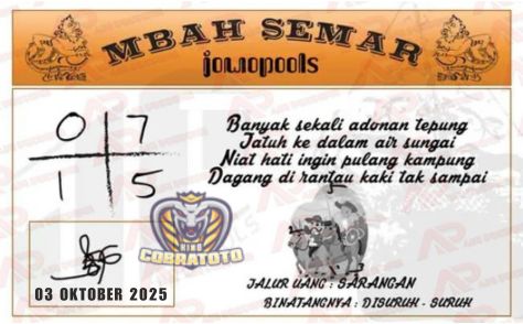 Syair SD Mbah Semar – Syair Sydney kami sediakan khususnya untuk para peminat togel . Dengan kiat fsama-sama dari syair mbah semar dapat memperoleh jackpot dari bandot SD. Situs akiprediksi.com menyediakan banyak jenis prediksi , dimulai dari prediksi sd , prediksi SD , ​​dan prediksi hk juga tentunya. Tujuan utama kami dalam memberikan prediksi nomor keluaran SD, ini yaitu untuk membantu para pengunjung kami memperoleh kemenangan yang luar biasa untuk setiap harinya. Dibawah ini kami bagikan  prediksi syair semar  untuk hari ini.